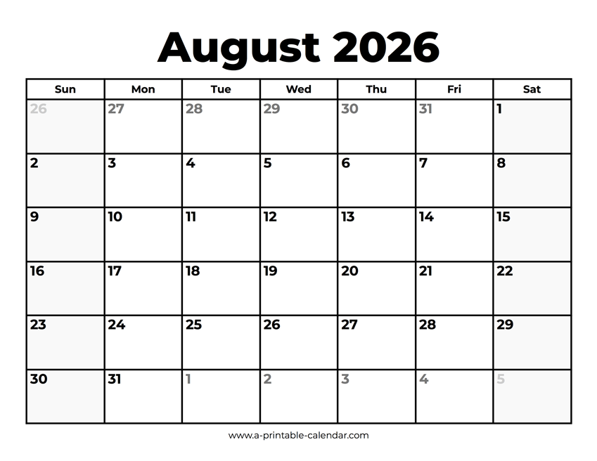 Download this 2026 August calendar with holidays if you’re looking for a simple printable PDF. There are no U.S. federal holidays in August. Paper size: US Letter. Dimensions: 8.5 x 11 inch. Orientation: landscape, horizontal.