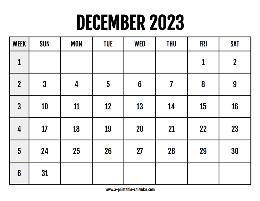 Easy to print calendar 2023 for December that also lists the week numbers. Which can be useful if you want to quickly know what week is it. Paper size: US Letter. Dimensions: 8.5 x 11 inch. Orientation: landscape, horizontal.