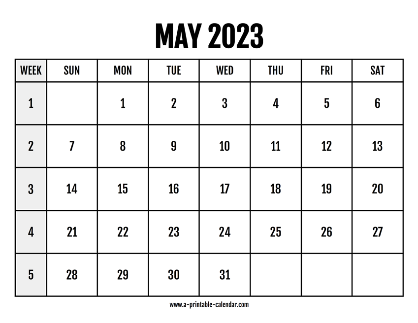 Easy to print calendar 2023 for May that also lists the week numbers. Which can be useful if you want to quickly know what week is it. Paper size: US Letter. Dimensions: 8.5 x 11 inch. Orientation: landscape, horizontal.