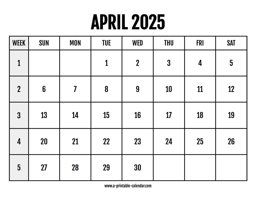 Easy to print calendar 2025 for April that also lists the week numbers. Which can be useful if you want to quickly know what week is it. Paper size: US Letter. Dimensions: 8.5 x 11 inch. Orientation: landscape, horizontal.