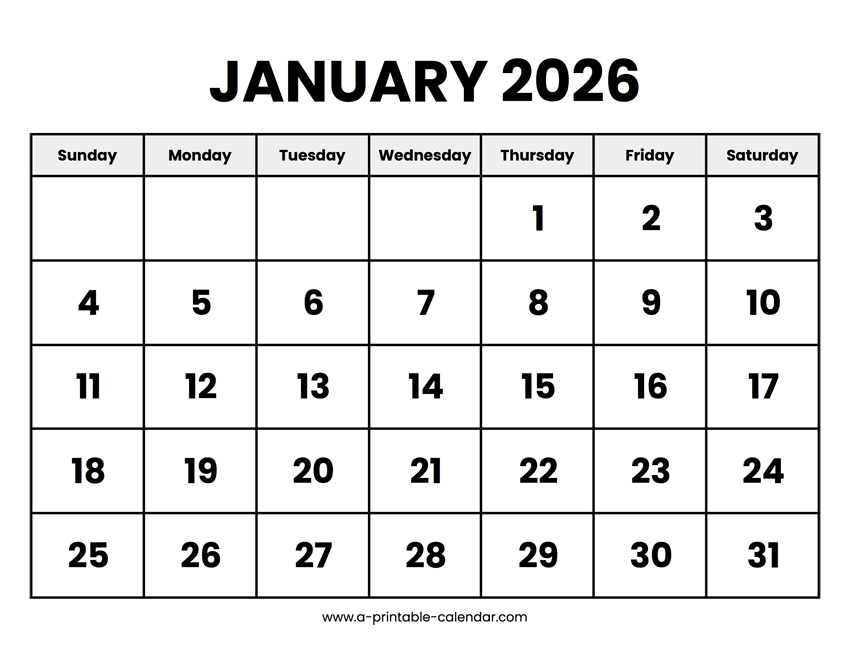 Download this January 2026 calendar in printable PDF format. A basic printable calendar doesn’t focus on design, but on the important things: dates, events, and holidays. Paper size: US Letter. Dimensions: 8.5 x 11 inch. Orientation: landscape, horizontal.