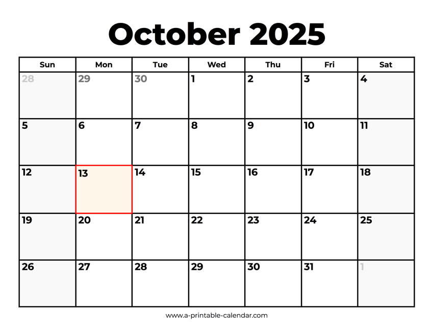 Download this 2025 October calendar with holidays if you’re looking for a simple printable PDF. There is one federal holiday in October, Columbus Day which is celebrated on the 13th. Paper size: US Letter. Dimensions: 8.5 x 11 inch. Orientation: landscape, horizontal.